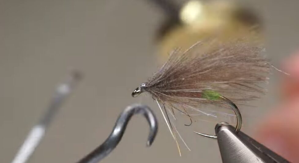 - Trim the stem, then sweep the remaining barbs back over the fly to form a soft hackle-style wing.