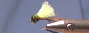 - Tie in the chartreuse Ultra Wire on the near side of the hook.