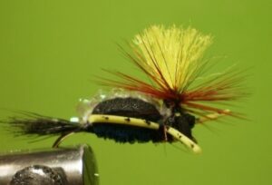 - Make a post using a loop of monofilament line from 6 cm and tie it in front of the Hackles. Point the ends of the mono towards the eye of the hook