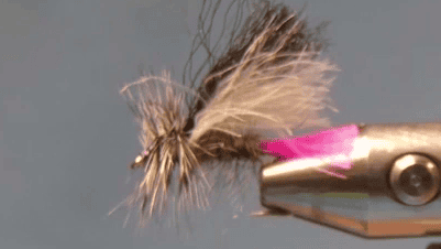 Palmer (wrap) the grizzly hackle evenly up the body and tie it off at the thorax. - Wing: