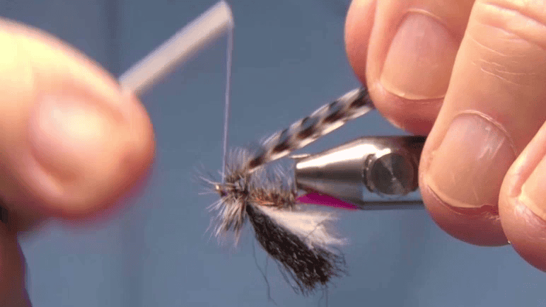 Tie in a very small grizzly hackle at the base of the tag. - Body: