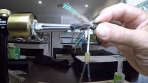 - Wrap the herl back to the base of the tail and then back to front. Tie it in.