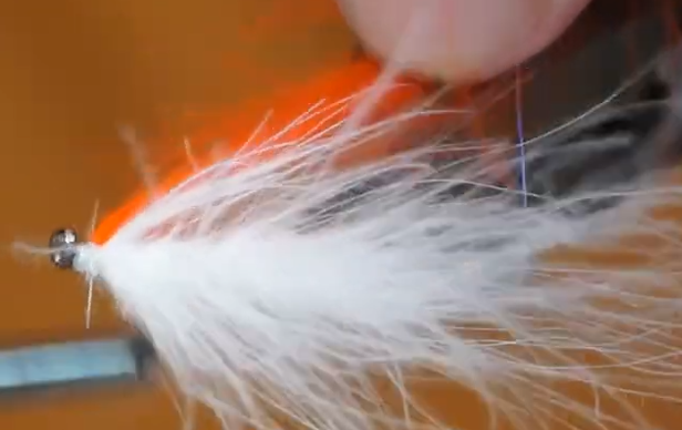 - Invert the fly and tie in a throat using orange CDC.