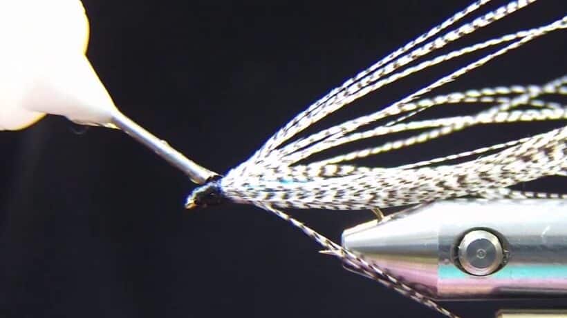 - Apply a coat of Sally Hansen’s to the wood duck fibres and thread wraps for durability.